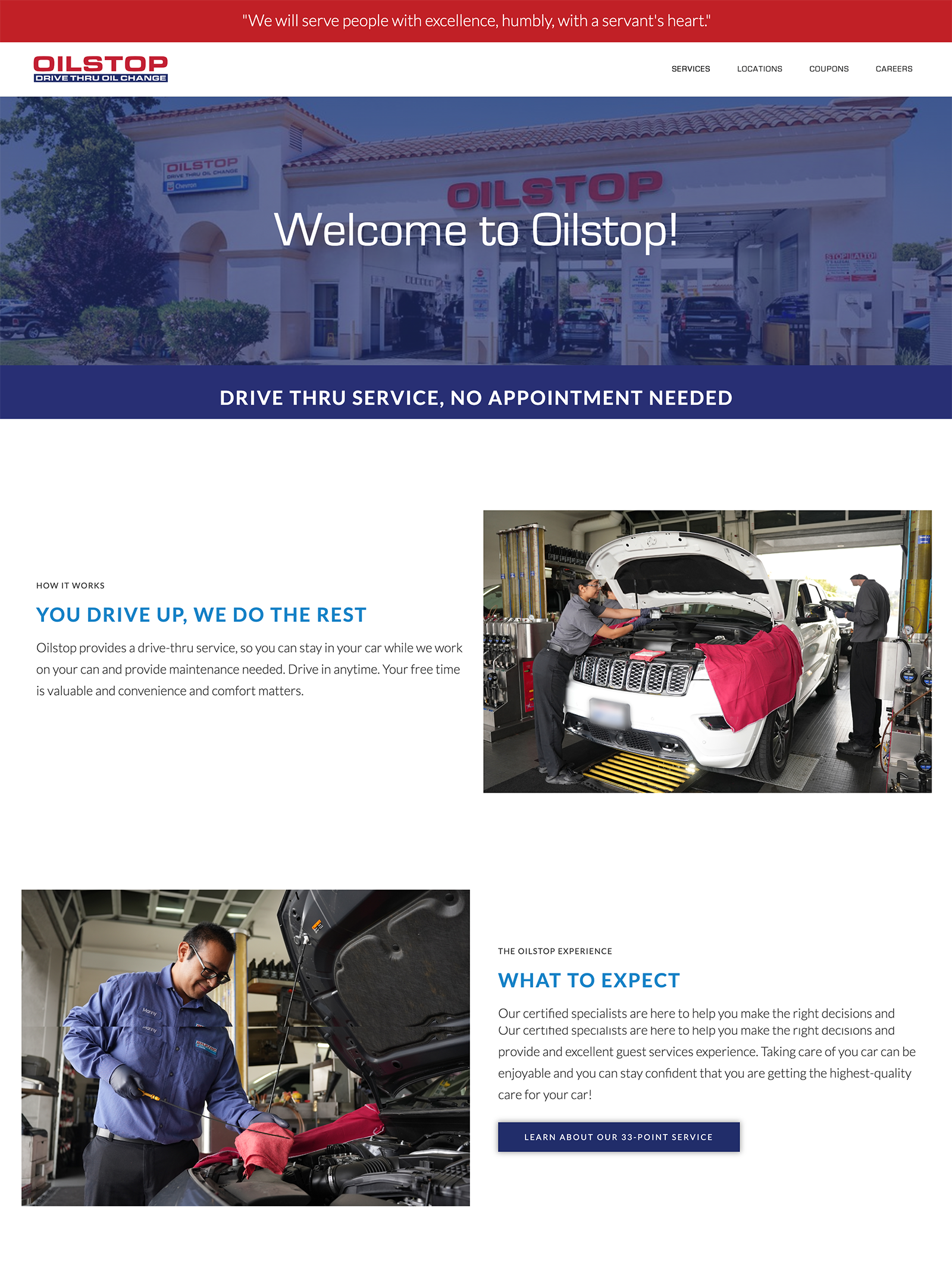 A nation-wide drive-thru oil change business focused on providing premium car care at an affordable price. Customer satisfaction and convenience is a top priority.